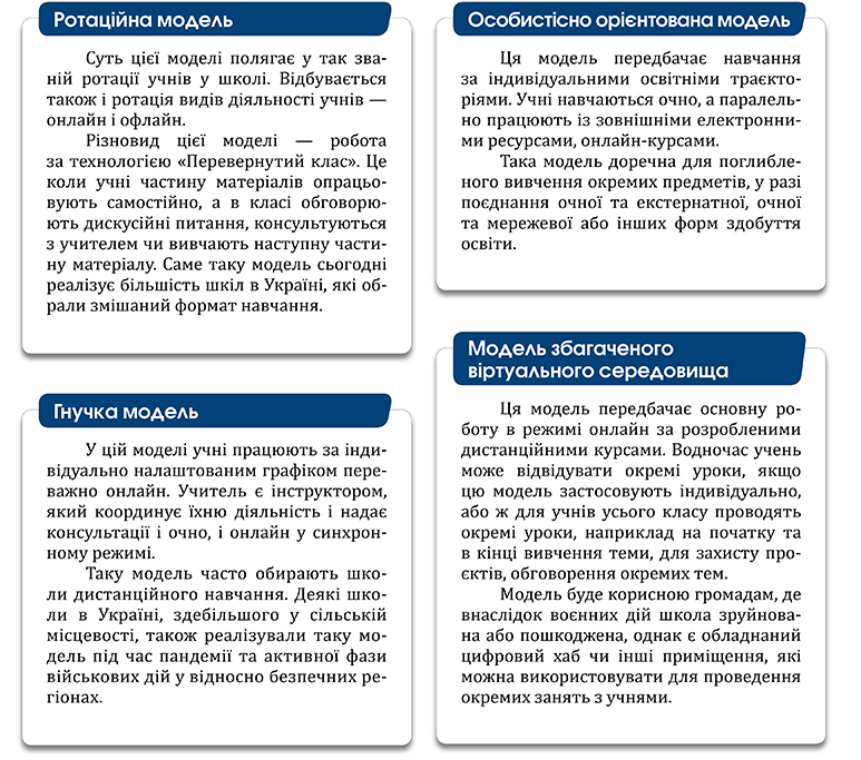 Чотири основні моделі змішаного навчання