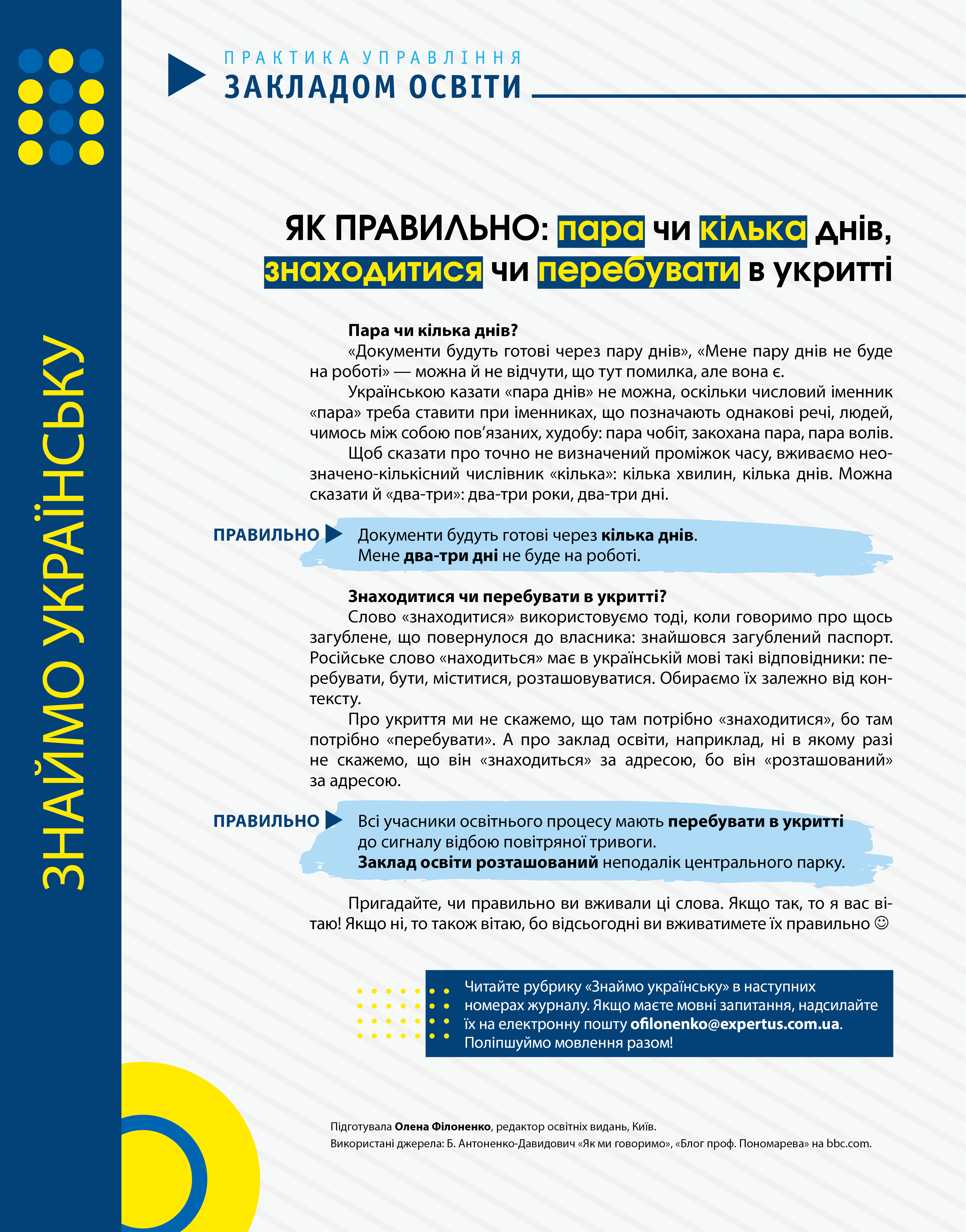 Як правильно: пара чи кілька днів, знаходитися чи перебувати в укритті